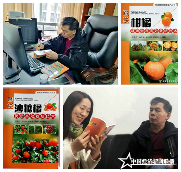 采訪結(jié)束,區(qū)善漢副院長親自簽名贈(zèng)送記者所著書籍《圖說柑橘避雨避寒高效栽培技術(shù)》和《圖說沙糖橘優(yōu)質(zhì)高效栽培技術(shù)》系列柑橘提質(zhì)增效生產(chǎn)叢書。該系列叢書是由國家柑橘產(chǎn)業(yè)技術(shù)系統(tǒng)廣西創(chuàng)新團(tuán)隊(duì)栽培功能崗位專家、廣西特色作物研究院區(qū)善漢研究員等編著?!秷D說柑橘避雨避寒高效栽培技術(shù)》針對越冬果實(shí)或果實(shí)成熟期間經(jīng)常因低溫霜凍、冰凍或降雨導(dǎo)致裂果、爛果、落果的柑橘品種,從避雨避寒栽培角度,全面介紹了柑橘避雨避寒栽培的概況以及適宜避雨避寒栽培的品種、果園規(guī)劃與建園、幼樹管理、結(jié)果樹管理、避雨避寒栽培技術(shù)、主要病蟲害防治等知識與技術(shù)。