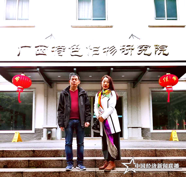 區(qū)善漢副院長(左一)與中經(jīng)記者在廣西特色作物研究院門口合影